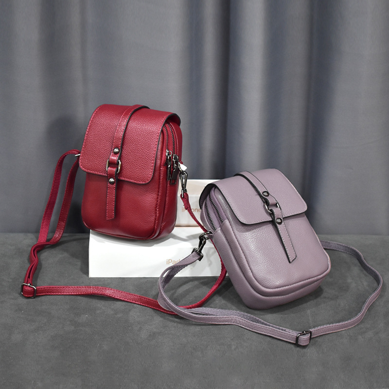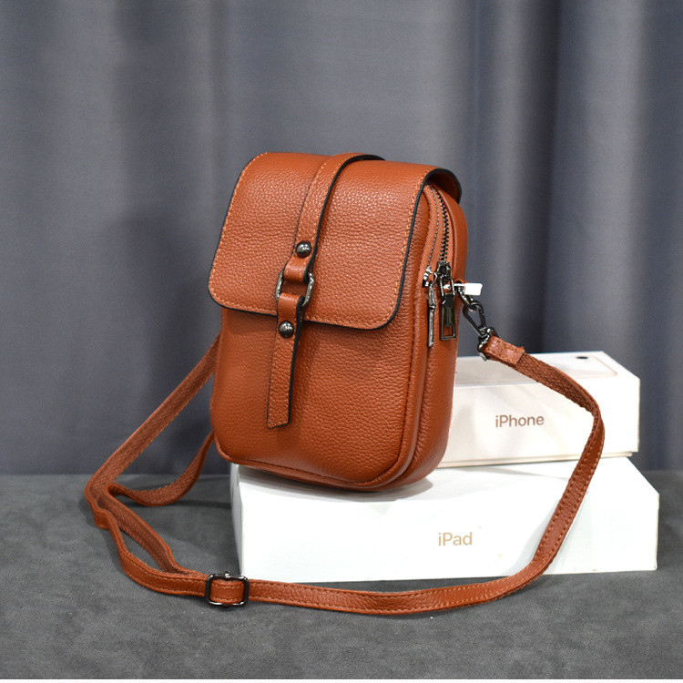 First Layer Cowhide Diagonal Bag Women Mobile Phone Bag