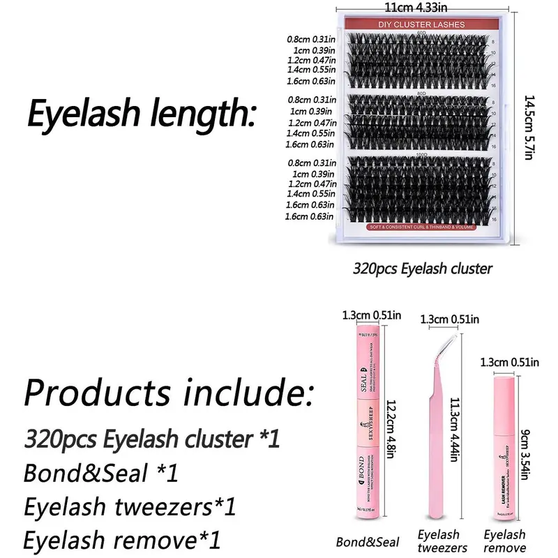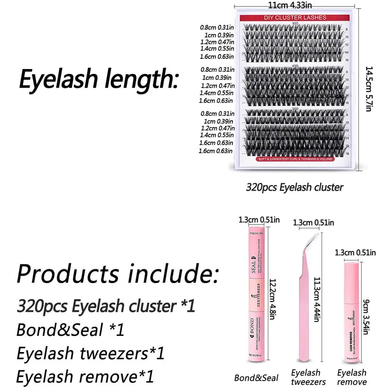【Complete Lash Kit】: The eyelash extensions set comes with 320 individual lashes, a precision eyelash tweezers, a gentle-formula eyelash glue, and a lash remover, providing everything you need for easy application and maintenance.