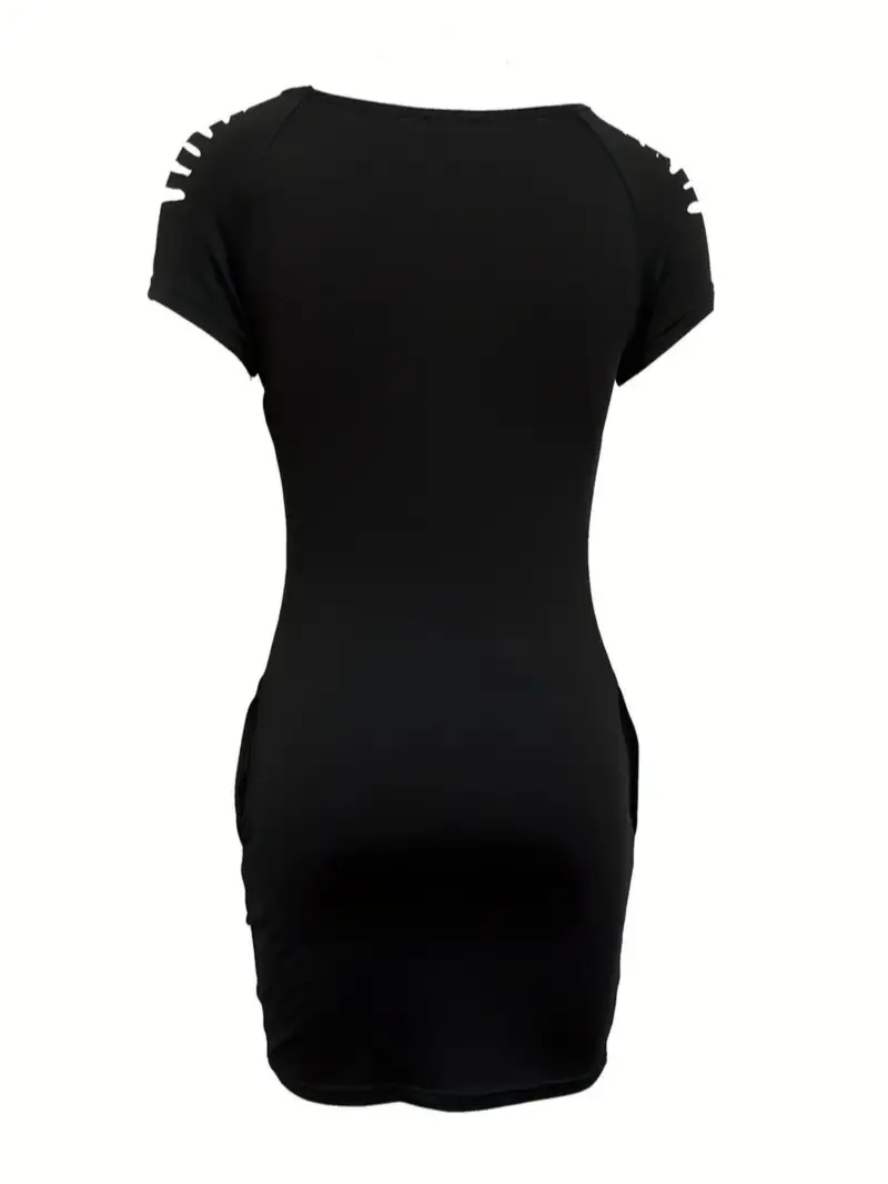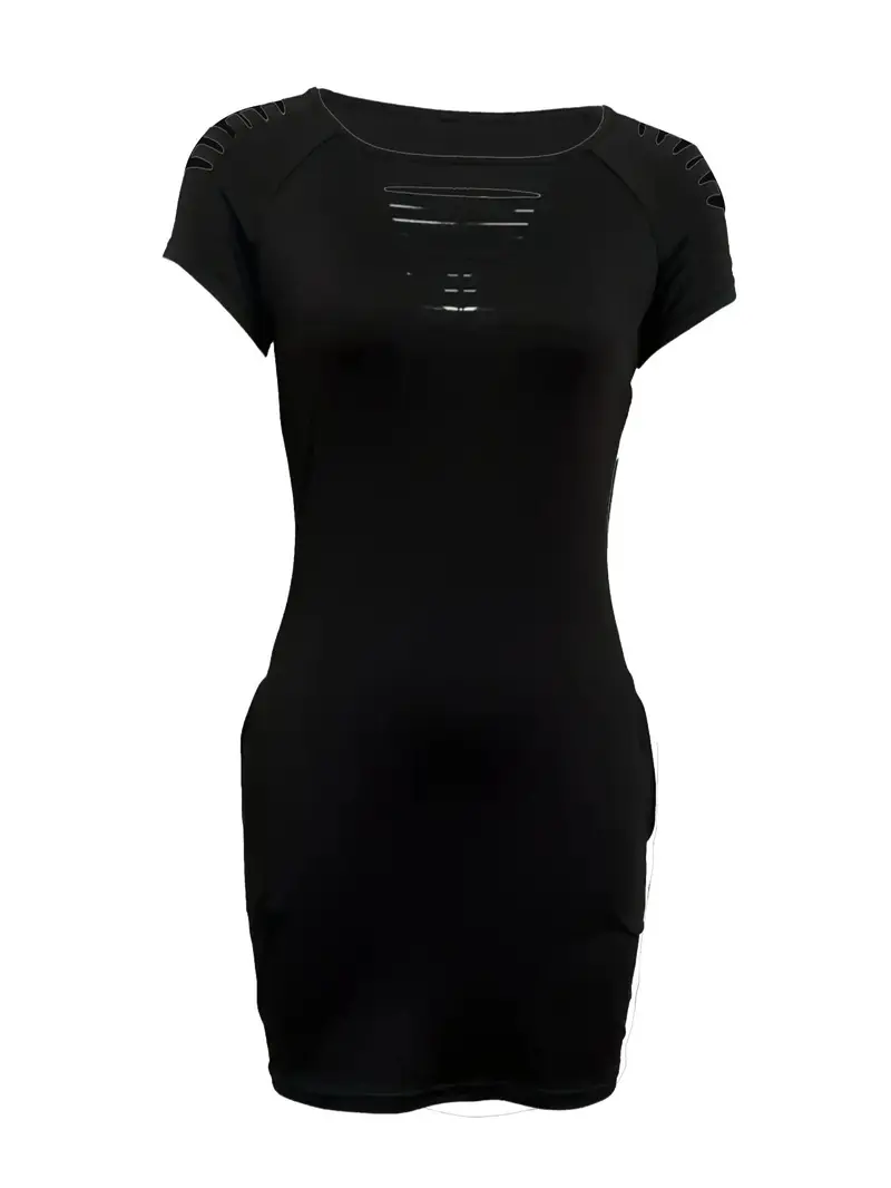 Women'S Solid Cut Out round Neck Short Sleeve Bodycon Dress, Summer Clothes Wome