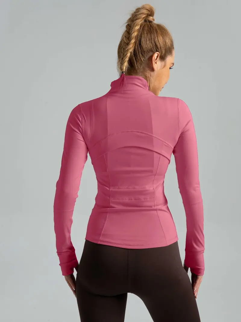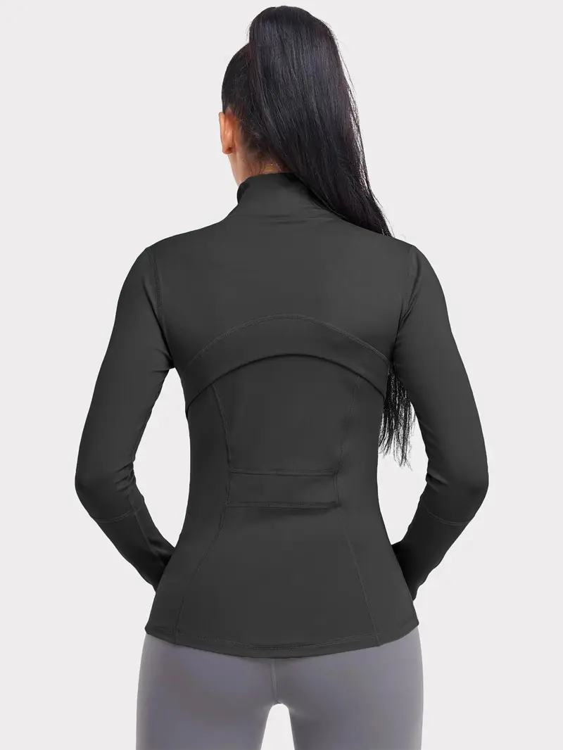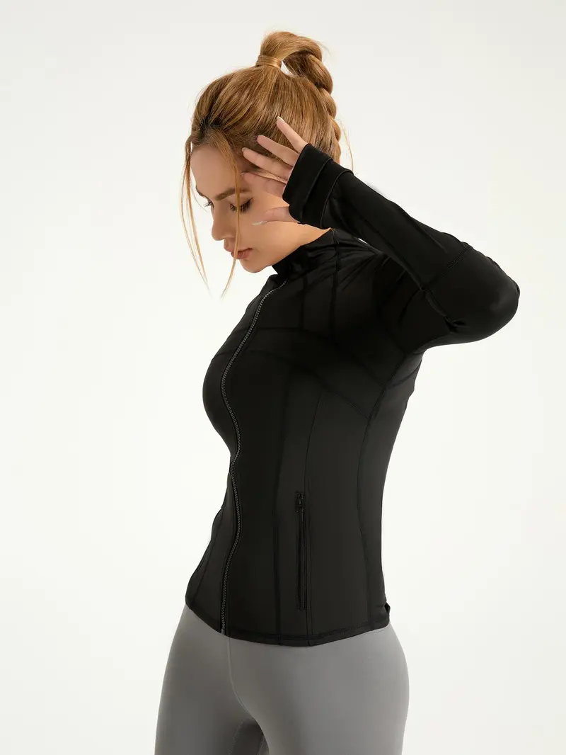 Women'S Spring Solid Zip-Up Pocket Sports Jacket, Long Sleeve Stand Collar Sport